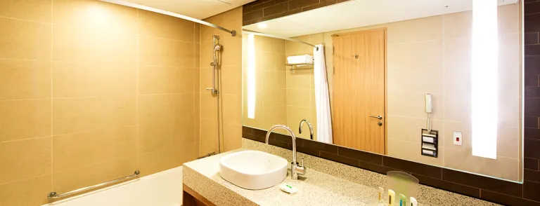 욕실 어메니티는 어메니티는 샴푸, 컨디셔너, 바디워시, 바디로션이 제공된다. 면봉, 화장솜, 샤워캡, 네일파일, 면도기 등은 요청된다.