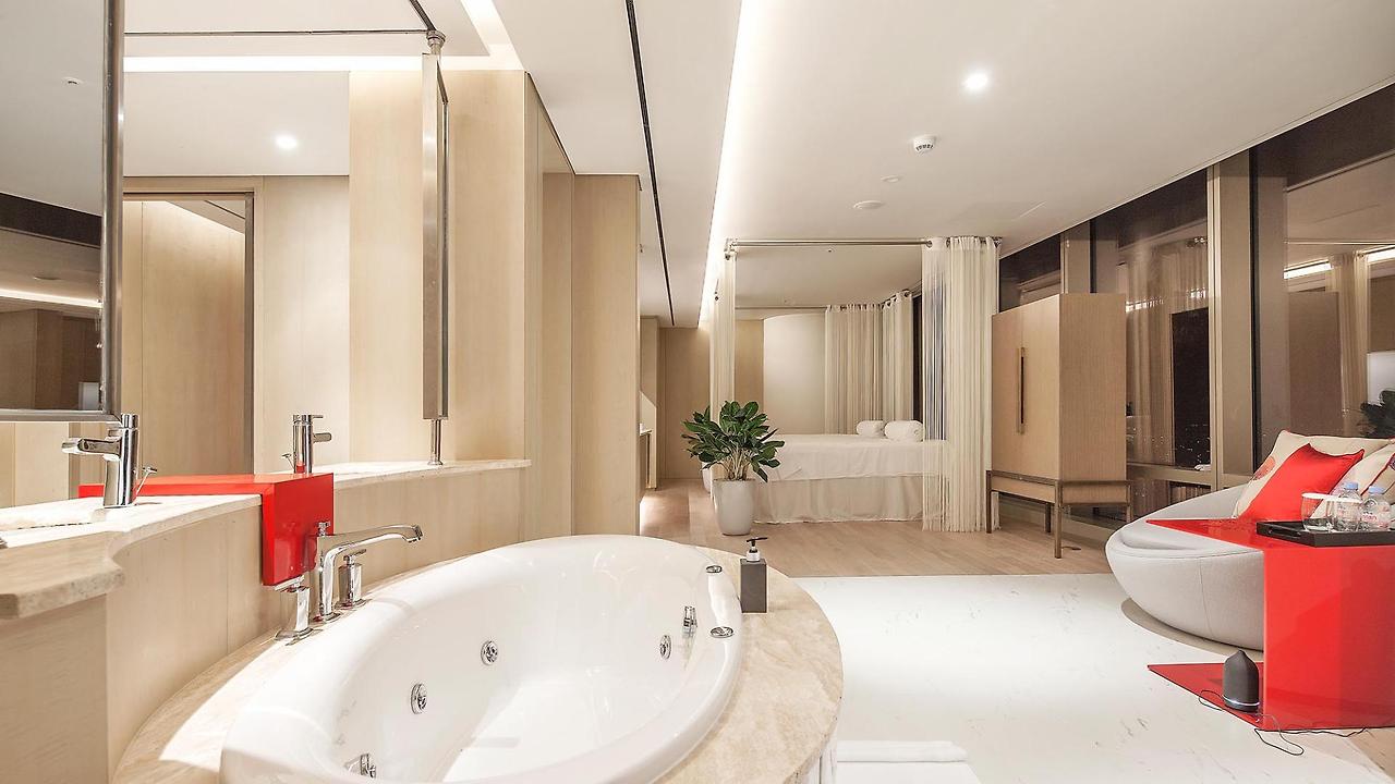 욕실에는 TOTO 비데와 독립된 샤워 부스 및 화장실 부스가 설치돼 있다. 어메니티로는 몰튼 브라운의 샴푸와 컨디셔너, 샤워젤, 로션, 비누가 제공된다. 이외 덴탈 키트와 쉐이빙 키트, 샤워캡, 위생백, 빗 등을 구비해 놨다.