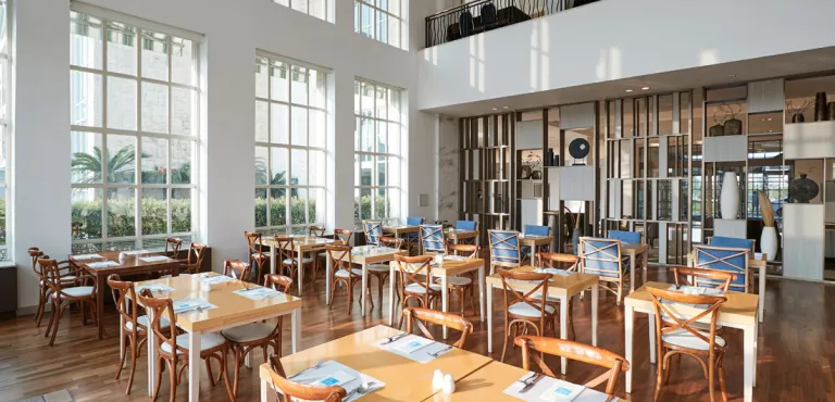 채광이 잘 들어오는 장소로 기분 좋은 아침을 맞이할 수 있다. 조식 운영 시간은 오전 7시부터 10시까지이다.