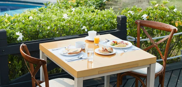 패밀리 테라스 룸 이용 시 테라스를 보유하고 있어 정원에서 예쁜 사진을 남기며 식사를 할 수도 있다.
