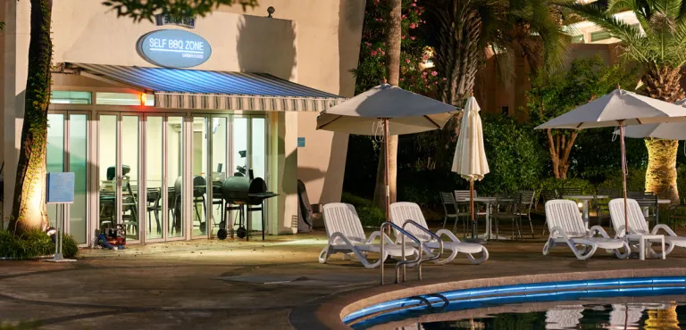 제주 스위트 호텔에서는 호텔 정원에서 솥뚜껑 BBQ를 이용할 수 있다. 동 시간대 최대 5팀만 가능하며 예약 마감은 오후 4시까지이다.