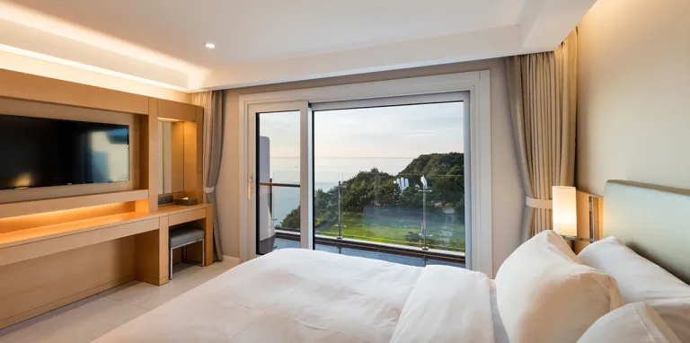 완벽한 오션뷰 전망을 갖추고 있다. 객실에는 네스프레소 머신이 구비되어 있다.