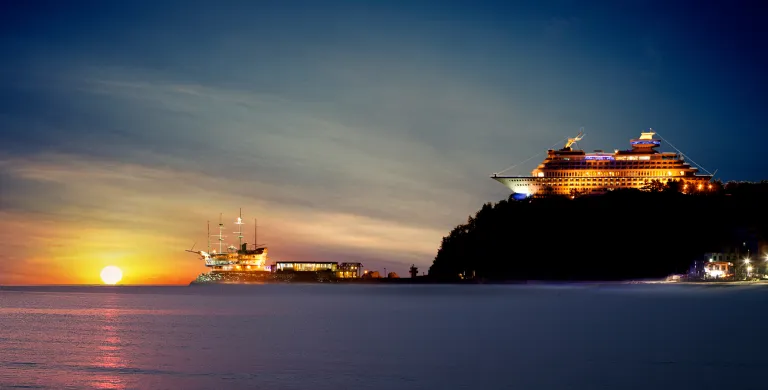정동진 썬크루즈 호텔은 정동진 해변 앞에 위치했다. 아름다운 해돋이를 볼 수 있는 위치이다. 호텔형과 콘도형 리조트로 나누어져 있다. 크루즈 모양을 하고 있는 외관이 인상적이다.