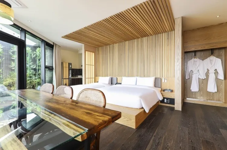 객실에는 넓은 개별 테라스도 있다. 오션뷰 테라스에서 히노끼 스파도 즐길 수 있다. 스파는 24시간 내내 무료로 이용이 가능하다. 늦은 입실시에는 입실 2시간 전 연락 시 미리 온수도 받아준다.