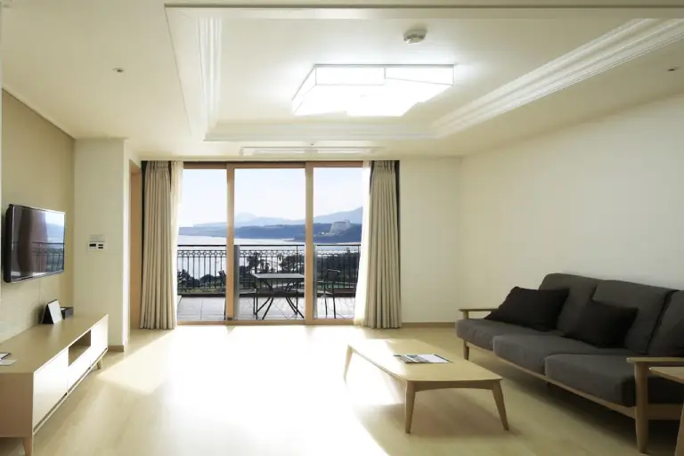 제주 부영리조트의 프리미엄 객실은 리빙룸과 베드룸, 테라스로 구성됐다.