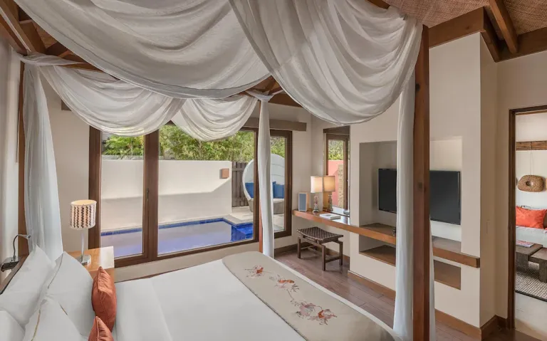 객실은 빌라 형태를 이루고 있으며 수영장과 연결된 객실도 있다. 플랜테이션 베이 리조트 앤드 스파는 총 4개의 수영장을 보유하고 있다.