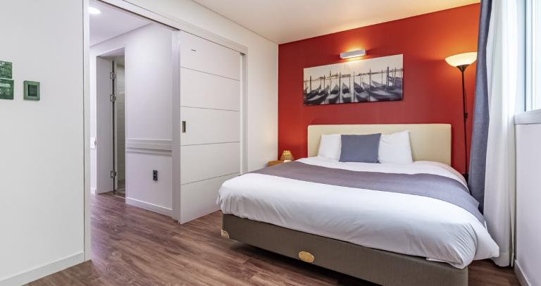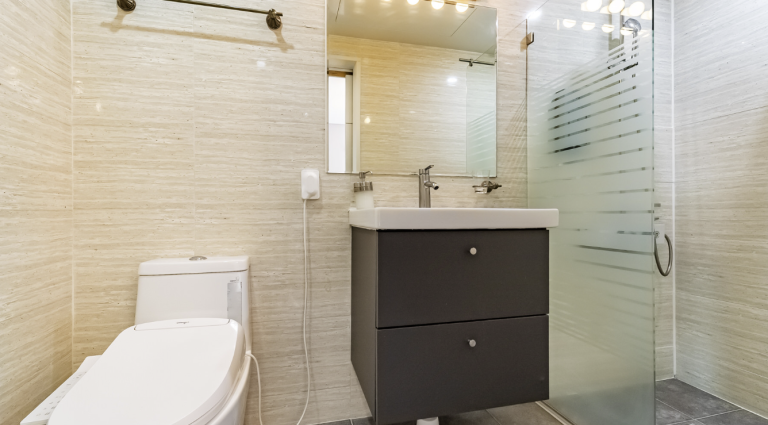 욕실은 샤워부스와 화장실 공간은 분리되어 있고 비데가 설치돼 있다. 샴푸, 바디워시, 수건, 헤어드라이기 등 기본 어메니티가 제공된다.