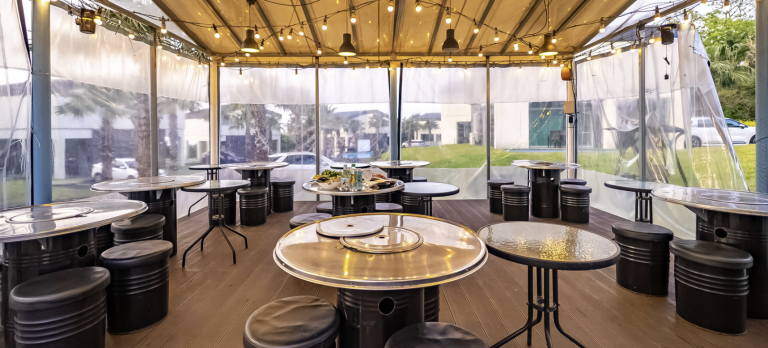바비큐는 오후 6시부터 10시까지 이용 가능하며, 체크인 시 신청하면 된다. 4인 기준 이용 요금은 3만 원이다. 숯과 그릴, 가위, 집게, 장갑, 소금은 대여 가능하며 그외 음식은 직접 준비해 오면 된다.
