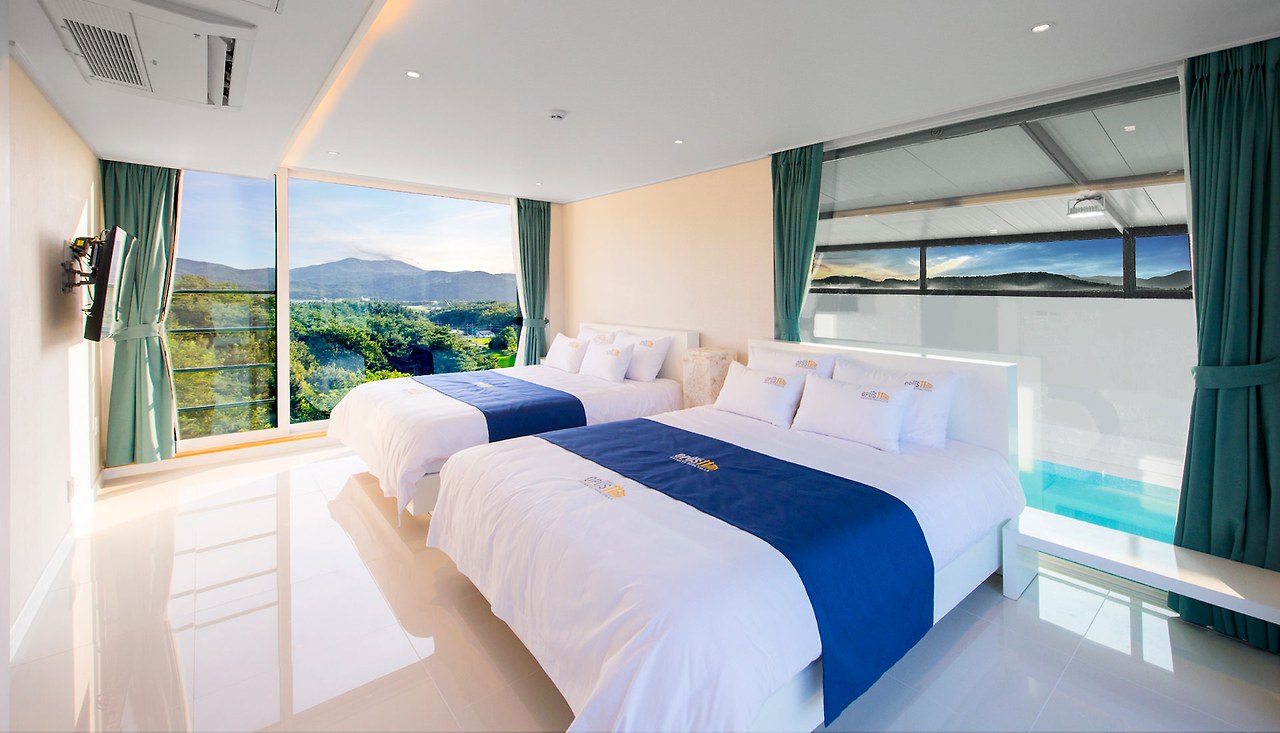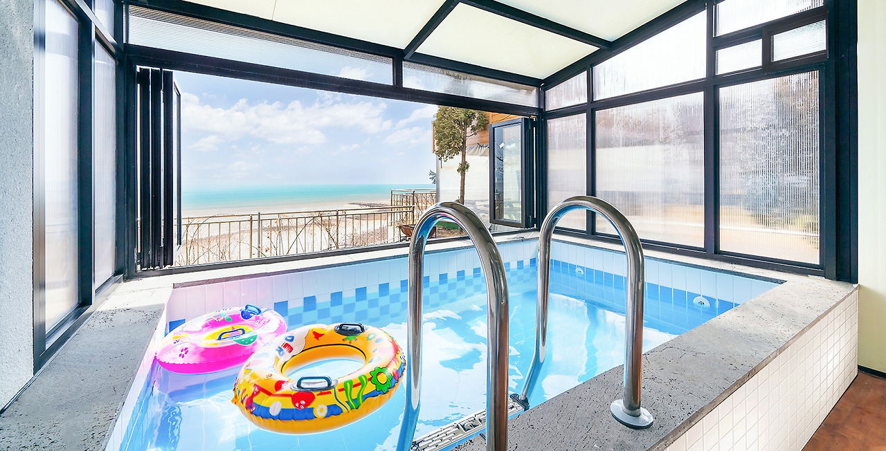 객실마다 개별 수영장과 바비큐 시설, 노래방 기계 등을 갖췄다. 정글짐을 비롯한 키즈 놀이 시설도 완비해 놨다. 수영장은 창문이 개방되는 형태라, 주변 풍경 보기에도 좋다.