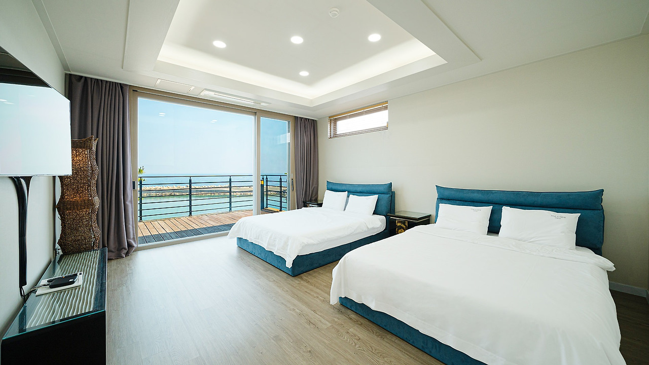 더케이프 펜션 객실은 크게 여덟 가지 타입으로 나뉜다. 이 중 일로와 지금, 해안, 안해 객실은 최대 6명까지 묵을 수 있을 정도로 여유롭다.