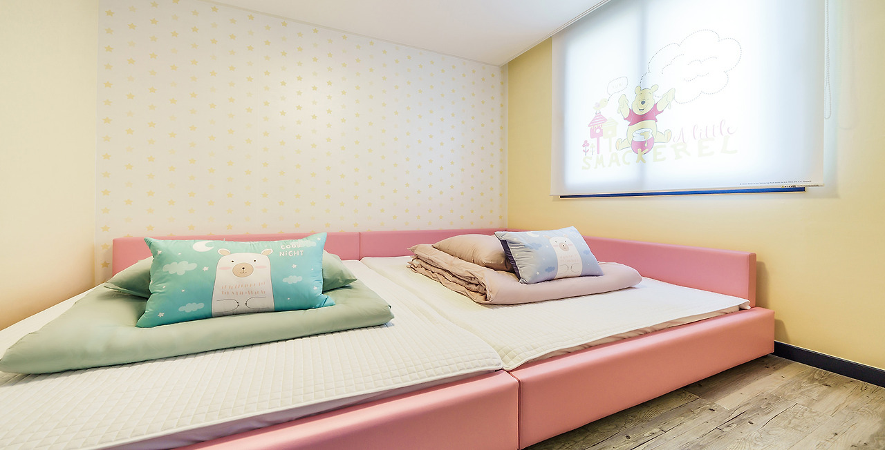 킹사이즈 침대만 4개를 구비했다. 개별 수영장 뿐만 아니라 정글짐도 설치해 놔, 아이들이 지루할 틈이 없다.