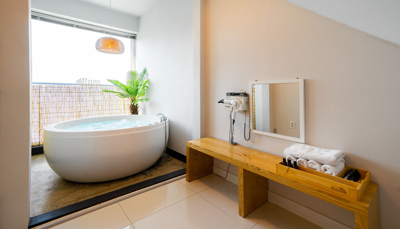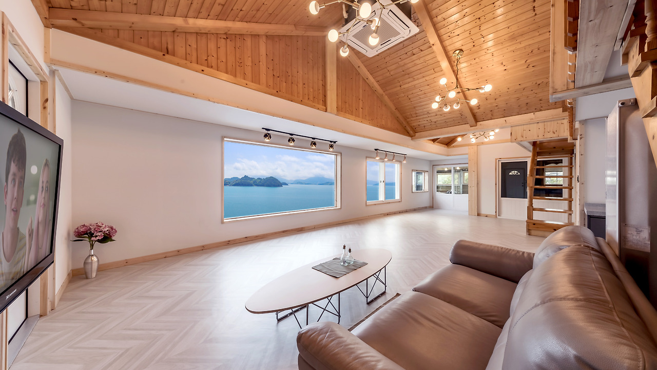조금 더 넓은 객실을 원하면 60평형의 해인을 추천한다. 최대 12명까지 묵을 수 있다. 침실 3개와 화장실 2개, 거실, 주방, 옥상 공원, 석조 노천탕 등으로 구성됐다.