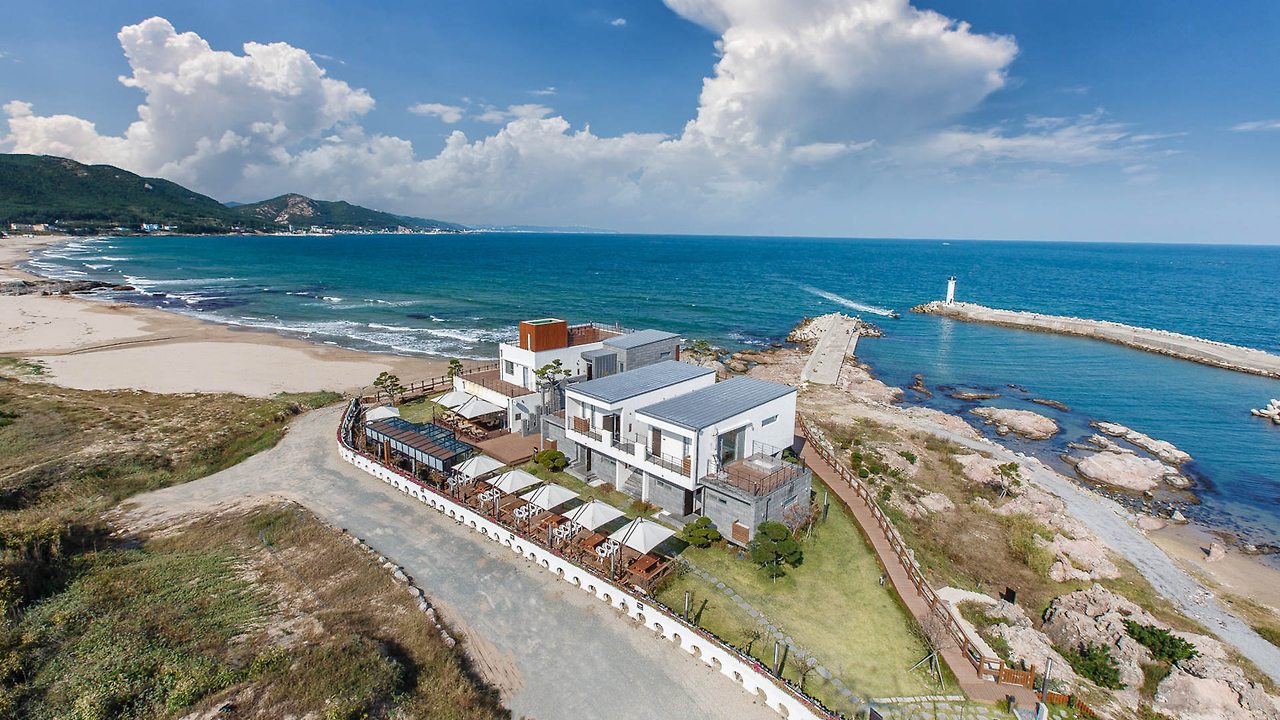두 번째는 포항 더케이프이다. 화진 해수욕장이 길게 늘어진 끝 쪽, 나지막한 모래 언덕 위에 자리 잡은 숙소이다. 덕분에 근처 방파제를 따라 조성된 산책로와 자연 공원, 해변을 모두 만나볼 수 있다.