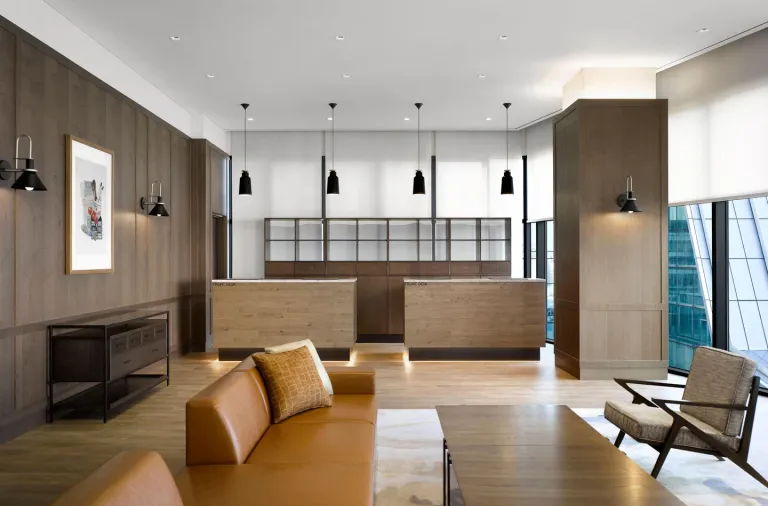로비와 프런트 데스크는 4층에 있다. 체크인은 오후 15시부터 가능하고, 체크아웃은 오후 12시까지 마무리하면 된다. 체크인 대기 시간이 길어질 경우를 대비하여 로비에는 넉넉한 좌석이 준비되어 있다.
