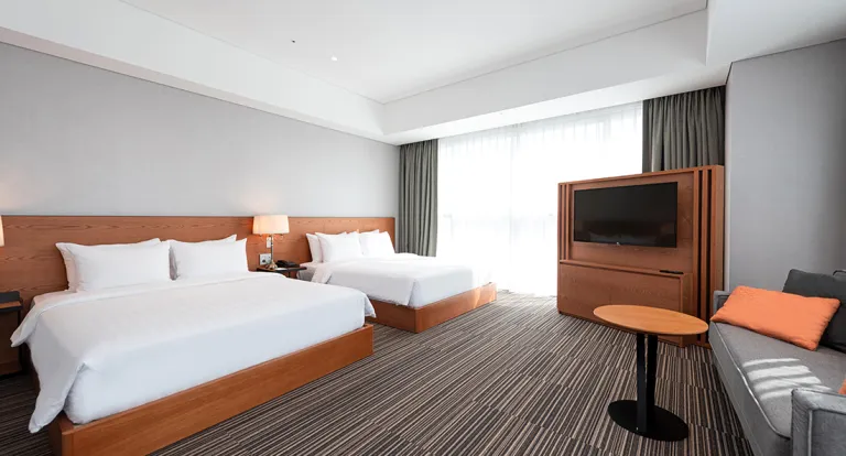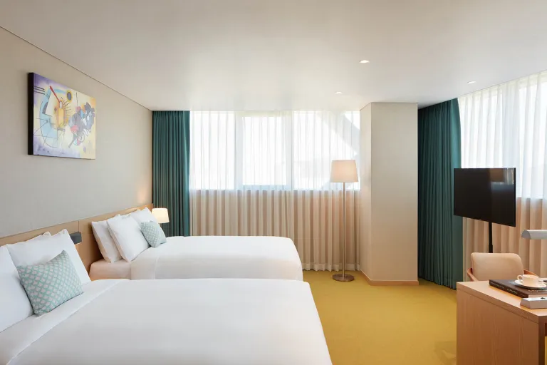 객실 타입은 트윈부터 퀸, 킹까지 다양하다. 1인 여행자부터 가족 여행객까지 누구나 편하게 머무를 수 있는 인천공항 호텔이다.