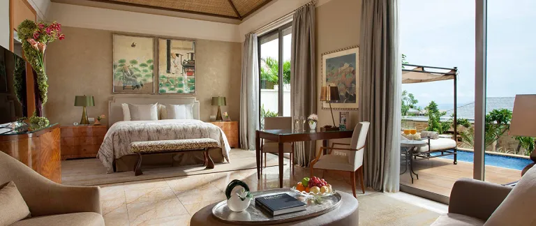 스위트, 풀빌라 2가지 타입으로 구분되고 있다. 객실 내부는 발리 전통 문양과 모던함이 조화를 이뤄 한층 고급스러운 분위기를 풍긴다.
