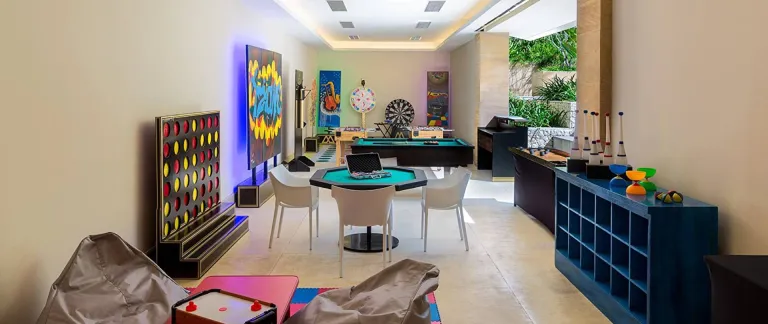 싱가포르의 유명 건축가가 직접 설계하여 모던하면서 시크한 인테리어가 돋보인다. 객실 타입에 따라 개별 풀장에서 해변으로 직접 연결되도록 설계되어 편리하게 해변을 즐길 수 있다는 장점이 있다.