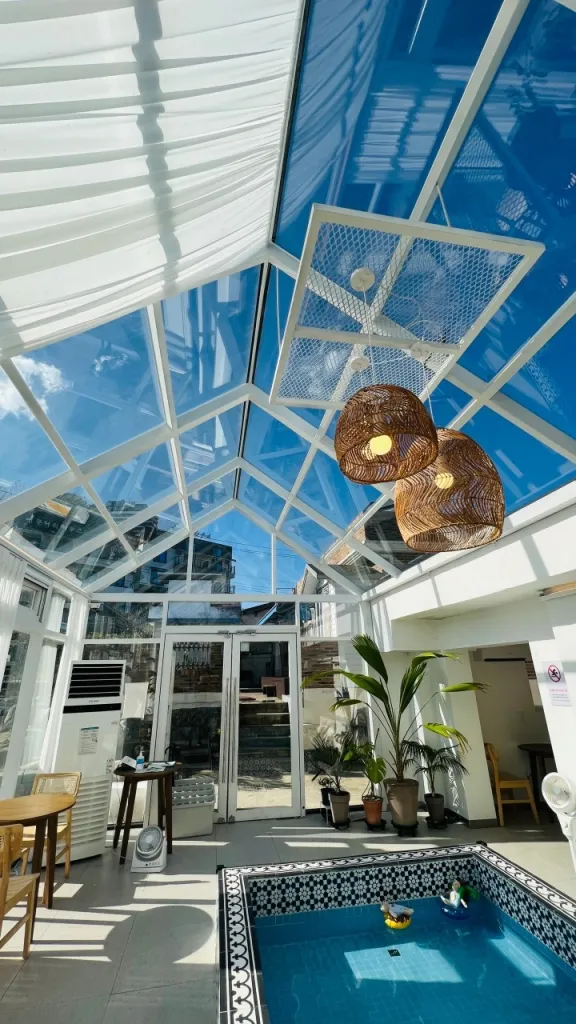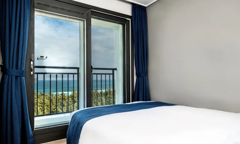 객실에서는 오션뷰를 감상할 수 있다. 취사는 불가능하지만 전자레인지, 커피포트, 토스터기를 이용할 수 있다.