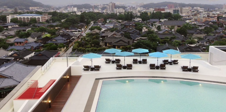 한옥마을을 조망하며 물놀이를 즐길 수 있는 루프탑 야외수영장이 있다. 카바나, 풀사이드바 시설도 있고 유료로 이용할 수 있는 선베드도 함께 마련되어 있다.