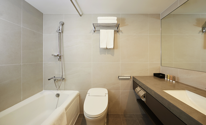 수건, 샴푸, 컨디셔너, 바디워시, 가운, 비누, 칫솔치약 기본 어메니티가 제공된다. 물, 카누, 차, 전기포트도 있으니 아침에 따뜻하거나 시원한 차 한 잔도 가능하다.