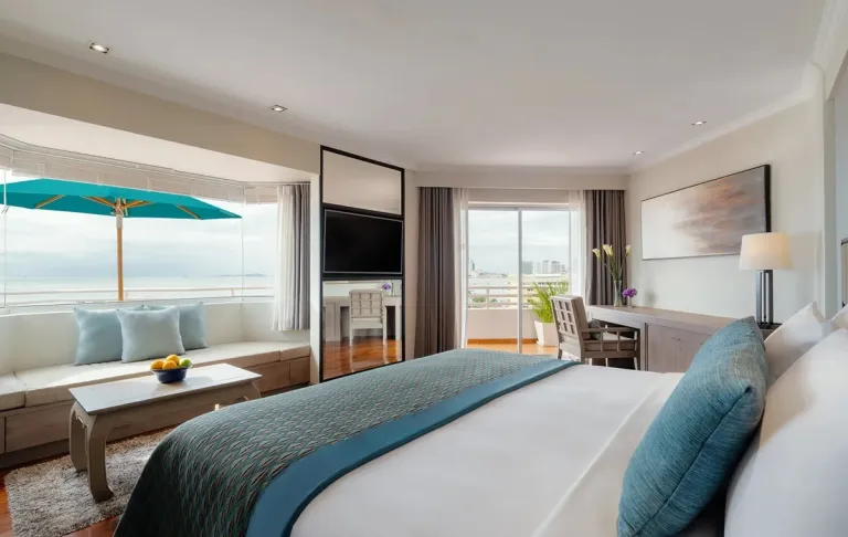 태국 파타야 호텔은 스위트룸을 포함한 457개의 객실을 운영 중이다. 현대적인 태국 디자인은 우아함이 느껴진다. 객실마다 개별 발코니도 있다. 전망은 가든뷰 혹은 오션뷰 중 선택이 가능하다. 발코니에서 좀 더 생생하게 파타야의 풍경을 누려보자!