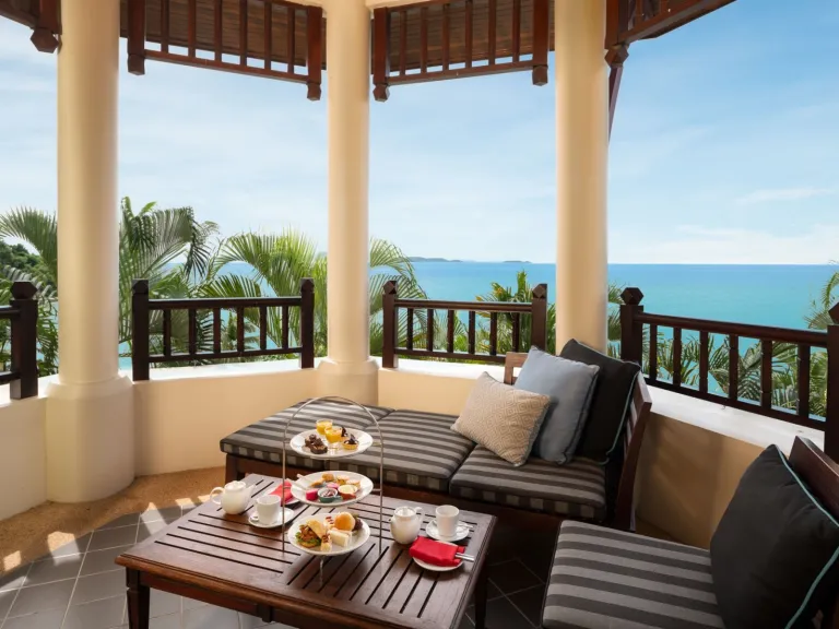 주니어 스위트 객실의 정자식 테라스는 정말 아름답다. 사진도 잘 나오는 포토 스폿이다. 주니어 스위트룸 투숙 시 클럽 라운지도 이용 가능하다. 조식과 TWG 애프터눈 티, 이브닝 칵테일까지 모두 무료로 즐길 수 있다.