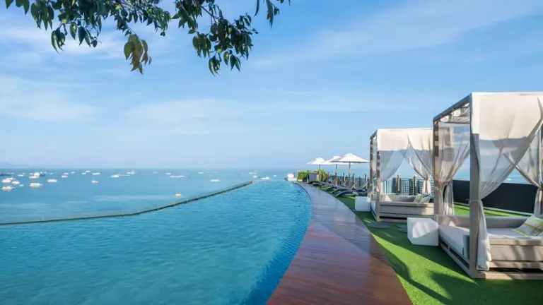 파타야의 해변과 맞닿은 수영장은 일몰 무렵 특히나 아름답다. 풀 바와 해변 레스토랑도 있으니 시간 맞춰 방문해 보자!