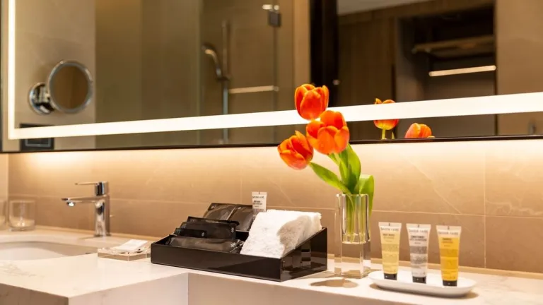 방콕 칼튼 호텔의 어메니티는 샴푸, 컨디셔너, 바디워시, 바디로션이 제공된다. 칫솔, 치약도 구비되어 있다.