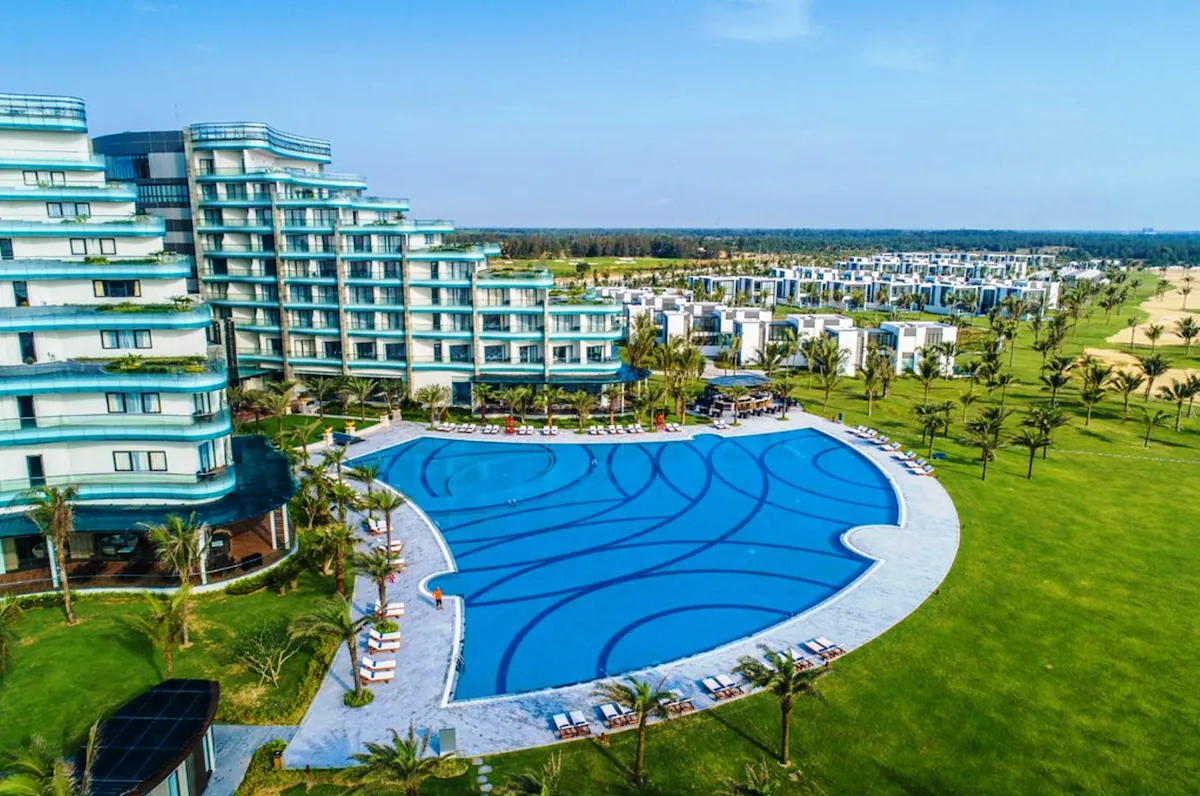첫 번째 추천 숙소는 빈펄 리조트 & 골프 남 호이안이다! 거대한 돛 모양을 형상화한 리조트 외관은 마주한 빈민 해변과 잘 어울린다.