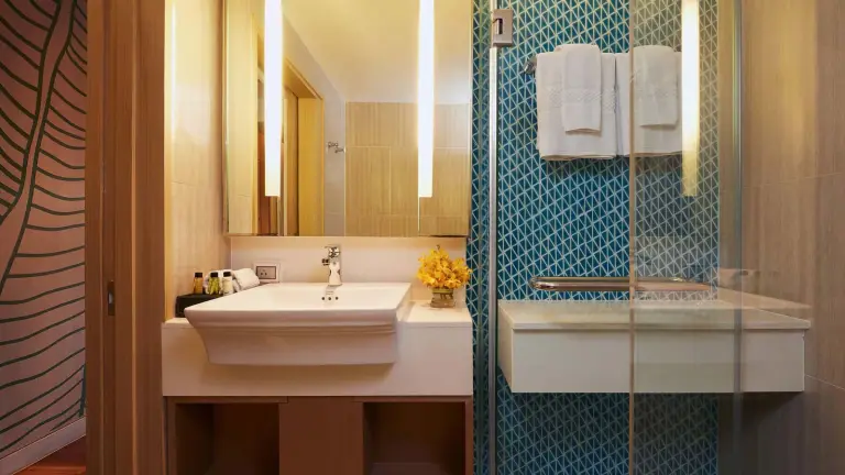 욕실은 샤워공간과 세면대, 화장실이 모두 분리돼 있다. 다만 샤워하는 공간이 개방돼 있어 민망할 수 있다. 리조트 측에 요청하면 커튼을 설치해주니, 너무 걱정할 필요는 없다.