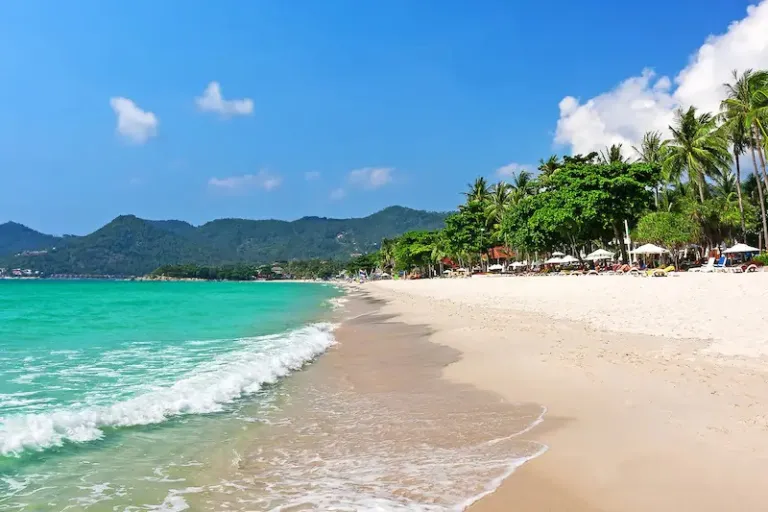 태국 꼬사무이에서 가장 번화한 곳은 차웽비치이다. 공항과 가까워 숙소와 식당, 카페 등이 밀집해 있다. 바다가 얕고 백사장이 길어 물놀이하기에도 좋다.