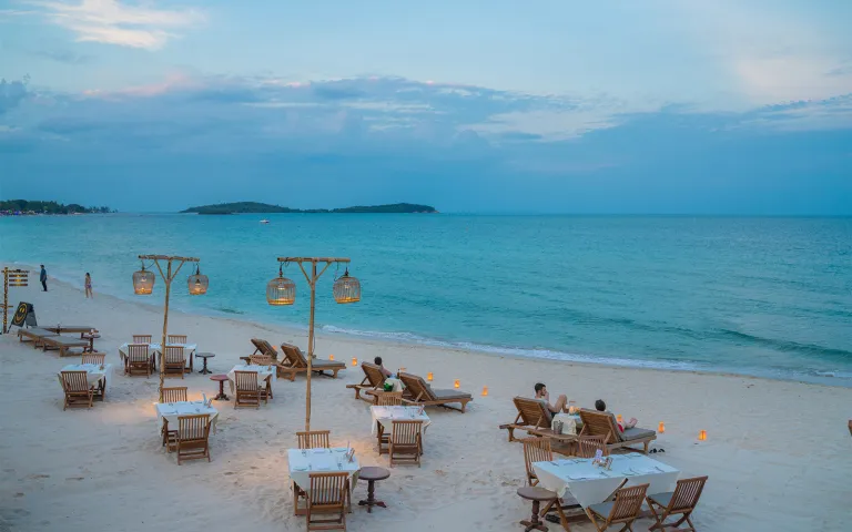 저녁에는 해변에서 근사한 식사도 가능하다. 조용하고 한적한 바다를 만끽해 보자.