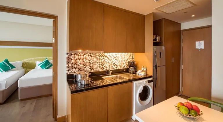 객실 내부에는 냉장고와 커피 머신, 조리도구를 갖춘 간이 주방이 있어 머무는 동안 내 집처럼 편안하게 이용 가능하다.