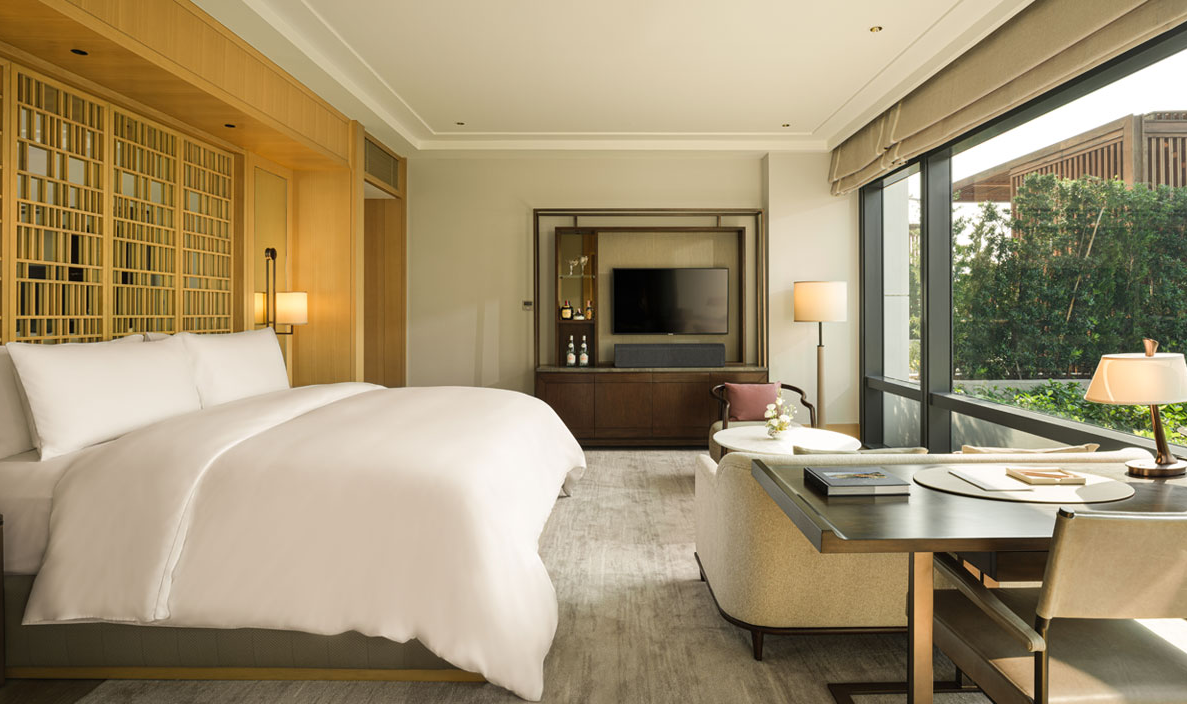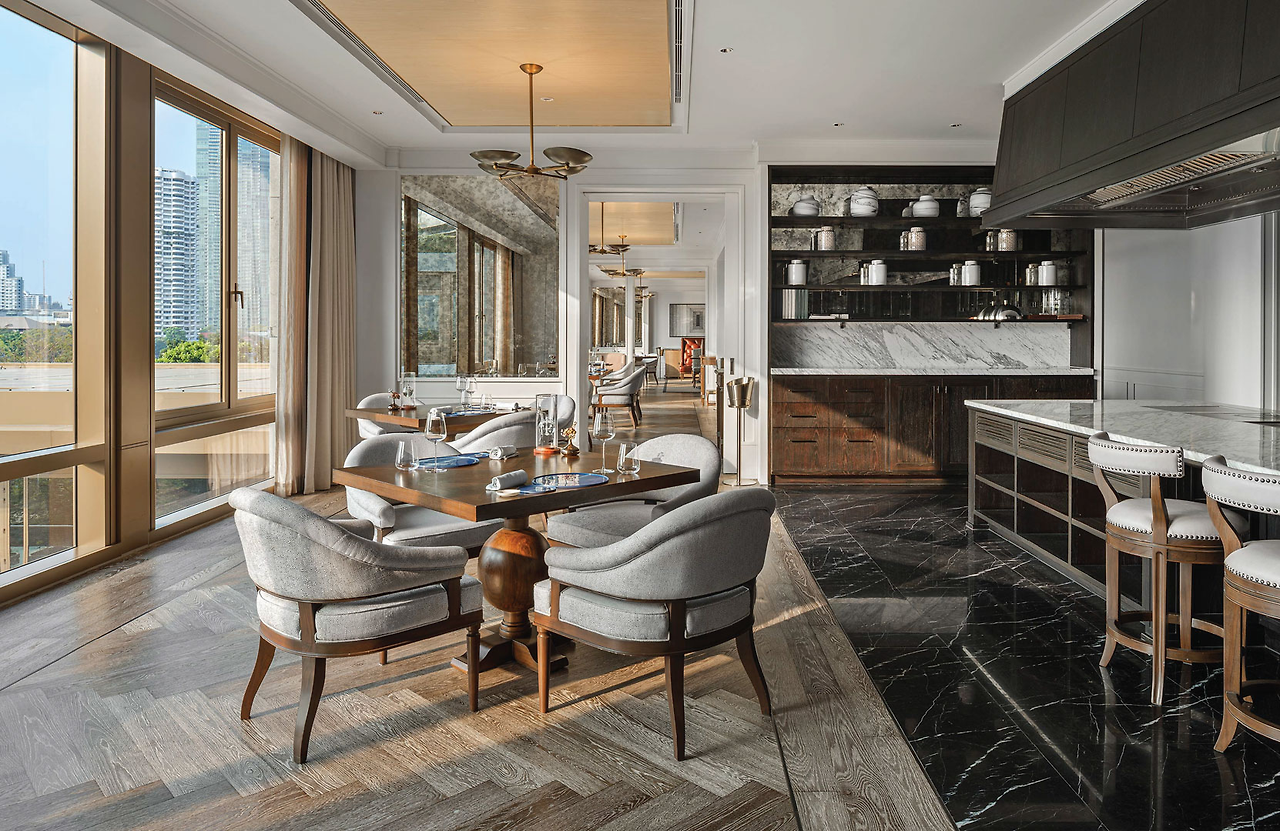 카펠라 방콕은 차오프라야 강변과 맞닿은 호텔이다. 군더더기 없이 깔끔한 화이트 외관과 잘 가꾸어진 정원은 차원이 다른 럭셔리함을 보여준다. 객실은 우드 인테리어로, 안락하고 편안한 분위기로 꾸며졌다.