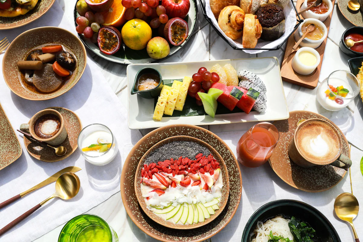 카펠라 방콕 조식은 정통 태국 요리 레스토랑인 프라 나콘에서 오전 6시 30분부터 11시까지 세미 뷔페와 함께 개별 주문 요리로 즐길 수 있다. 운영 시간이 여유로워서, 아침 일찍 일어날 필요가 없다.