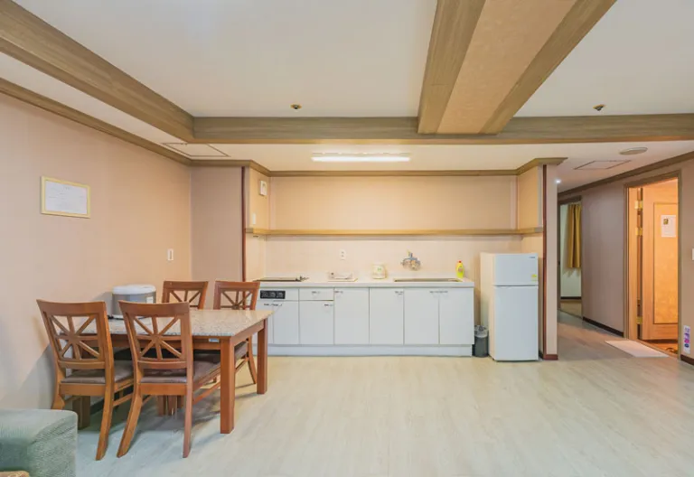 동관에는 콘도형 객실이 자리했다. 콘도 타입에는 취사가 가능하도록 밥솥, 냉장고, 냄비, 접시, 프라이팬, 도마, 수저 등을 갖춰 가족 여행 숙소로 좋다.