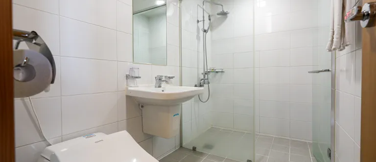 객실에는 헤어드라이기, TV, 커피포트, 에어컨, 냉장고, 생수 2병 등이 갖추어져 있다.
