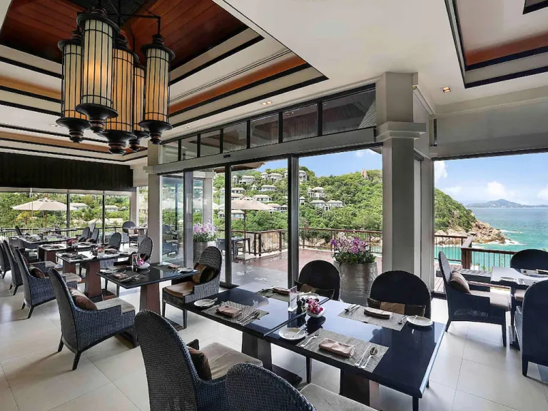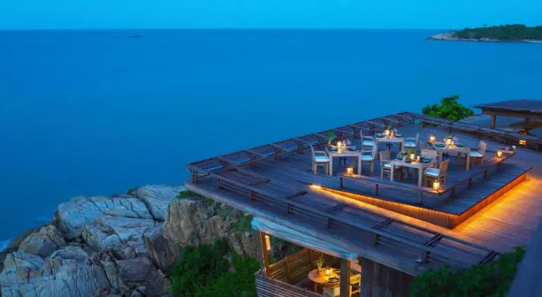식스 센스 사무이의 ‘Dining on the rocks’ 레스토랑은 마치 바다 위에 떠있는 듯한 느낌이 드는 곳이다. 환상적인 뷰를 지니고 있어 유명한 곳이다.
