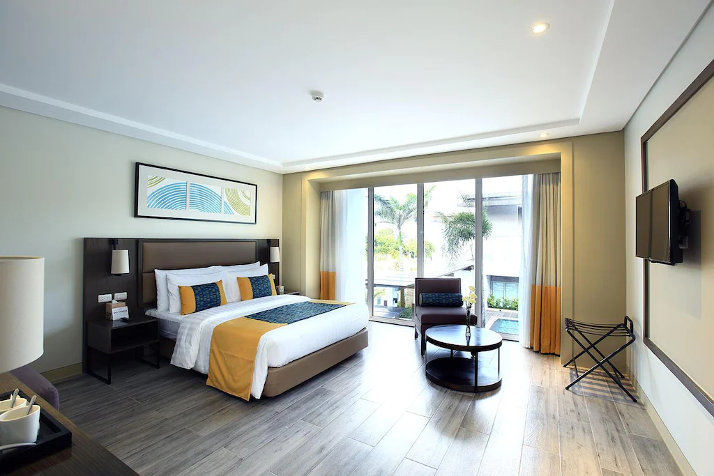 객실은 지중해 감각이 가미된 현대적인 필리핀 인테리어로 꾸며졌다. 전체 아홉 가지 타입으로 나뉜다. 싱글 침대 2개를 구비한 디럭스 룸은 친구 또는 소규모 가족 여행자에게 인기가 높다.