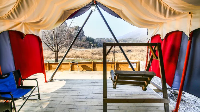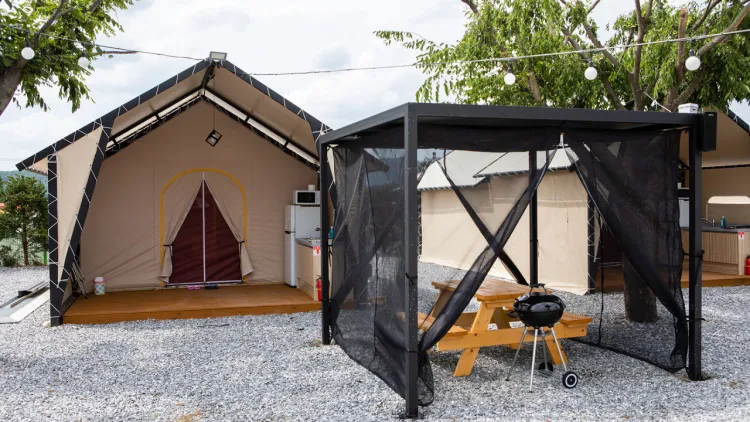 네 번째로 소개하는 ‘노블글램핑’은 이제 오픈한지 일 년 반 정도 된 신상 캠핑장이다. 모든 객실에는 개별 테라스와 바비큐장, 개별 화장실도 준비되어 있어 가족과 함께 프라이빗 하게 머물기 좋은 곳이다.