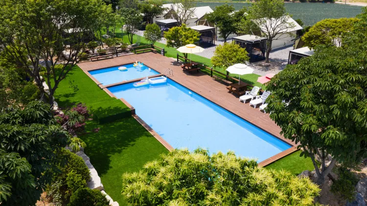 객실 타입도 다양하게 준비되어 있다. 전용 수영장이 있어 최대 8인까지 투숙 가능한 큼직한 풀빌라 글램핑 객실부터 럭셔리한 히노키 욕조가 구비된 카라반 객실도 준비돼 있어 취향에 맞춰 선택할 수 있다.