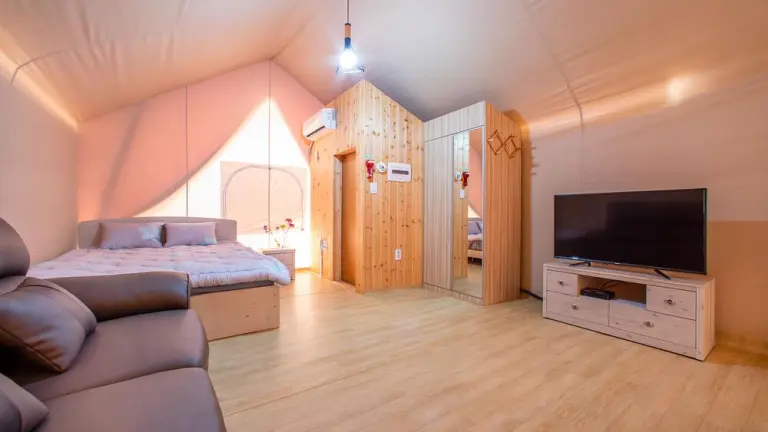 홀스킹덤에는 글램핑 객실 외에도 방갈로 객실도 준비되어 있으니 취향에 맞춰 선택하면 된다. 체크인은 오후 3시부터 가능하며, 체크아웃은 오전 11시까지 마무리 하면 된다.