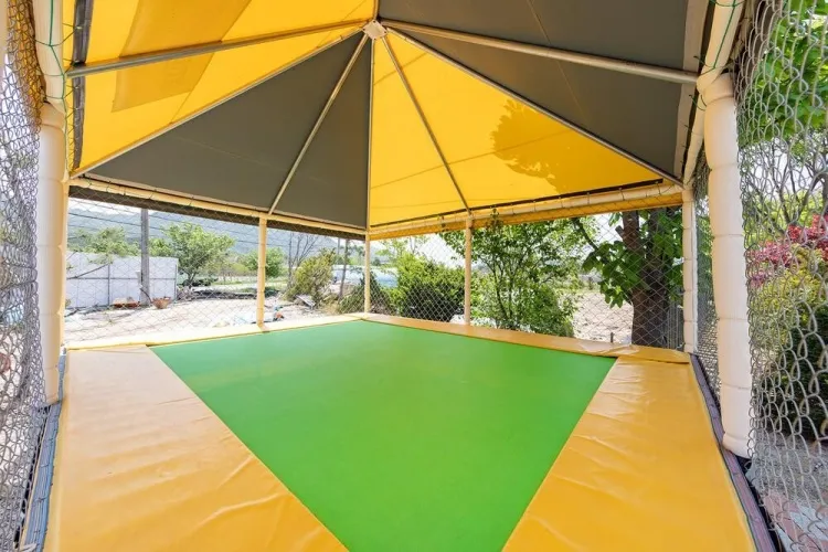 이와 함께 아이들을 위해 트램펄린과 야외 수영장이 준비되어 있다.