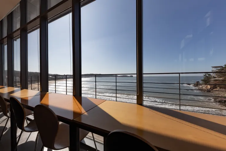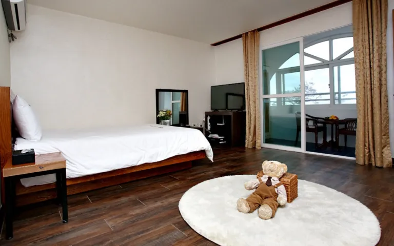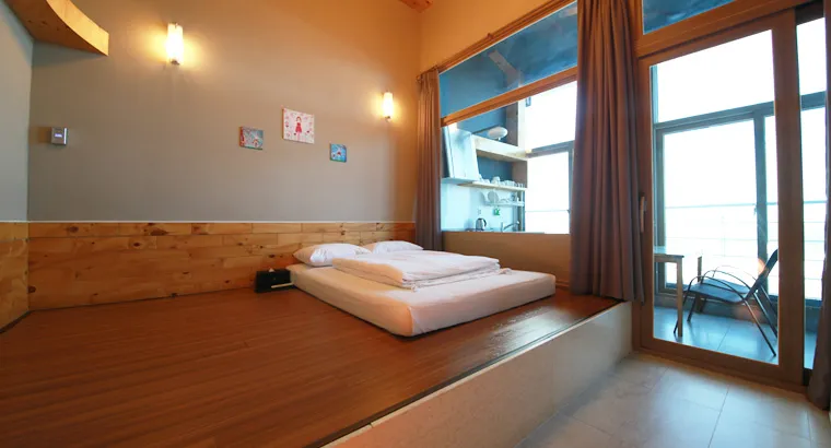최소 평수가 11평형부터 시작해 다른 숙소 대비 여유롭게 머물 수 있다는 점과 테라스에서 마주하는 만리포 해변의 파노라믹 뷰 덕분에 커플 여행 숙소로 인기가 높다.