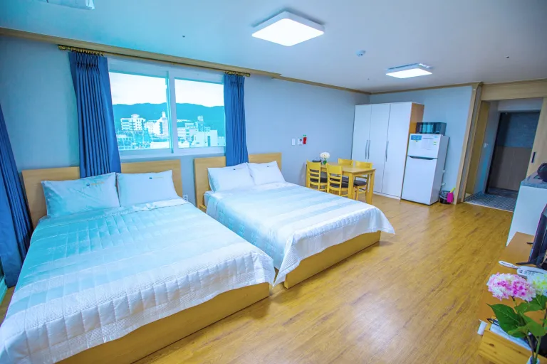 객실은 A~D로 구분되어 있으며, 2인에서 최대 6인까지 투숙 가능하다. 일부 객실은 취사가 가능해 가족 여행객들에게 특히 인기가 높다.