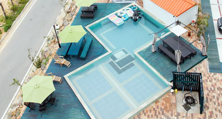 그뿐만이 아니라 해변을 바라보고 있는 넓은 수영장은 물론, 바닷바람 쐬며 바비큐 파티도 즐길 수 있도록 별도의 야외 비치파라솔이 마련되어 있다.