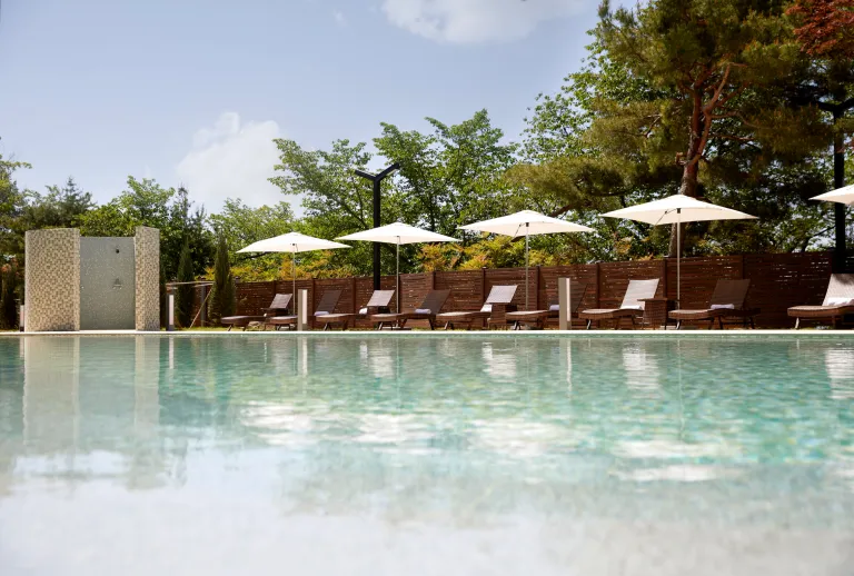 대표 부대시설로는 야외 수영장이 있다. 키즈 풀이 별도로 마련되어 있어 어른과 아이 모두 만족스럽게 즐길 수 있다.