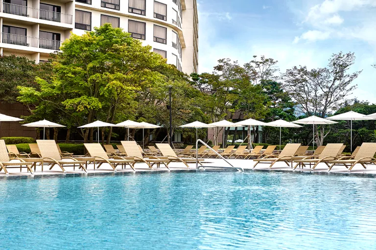 부대시설로는 실내외 수영장과 온천 사우나, 헬스클럽, 카페, 레스토랑이 있다.