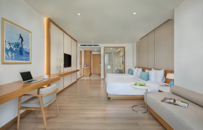 객실 면적도 여유로워 편하게 지낼 수 있다. 슈퍼킹 또는 트윈베드와 소파, 간단한 업무를 볼 수 있는 공간까지 완벽하게 갖춰져 있다.
