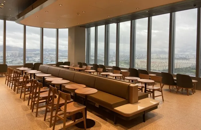 호텔 38층에는 조금 특별한 스타벅스가 있다. 스타벅스 대전엑스포스카이점은 고층에 위치해 탁 트인 전망을 선사한다. 아, 스타벅스에 가기 위해서는 호텔 내 엘리베이터가 아닌 1층 스타벅스 전용 엘리베이터를 이용해야 한다. 뷰맛집에서 근사한 커피 타임을 즐겨보자!